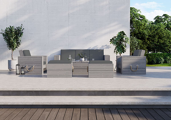 Die Lounge Holzliege ist in der Variante „natur“ erhältlich. Sie besteht aus sibirischer Lärche, für eine lange Lebensdauer. Das Holz bekommt, ohne Lasur, mit der Zeit eine graue Patina. Gegen Aufpreis kann die Liege auch mit Lasur bestellt werden.